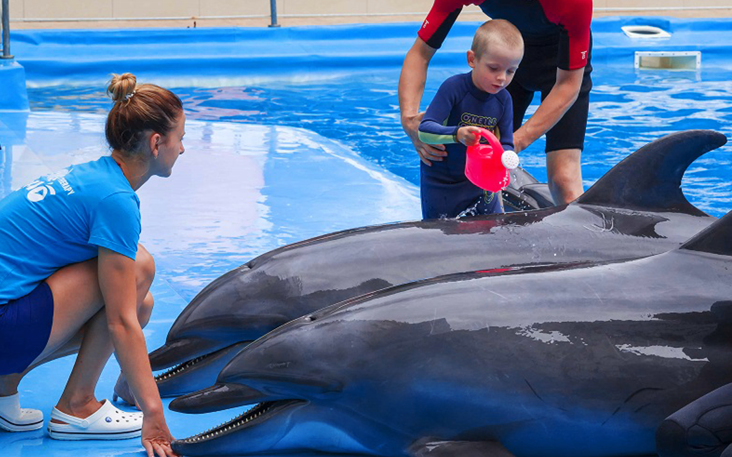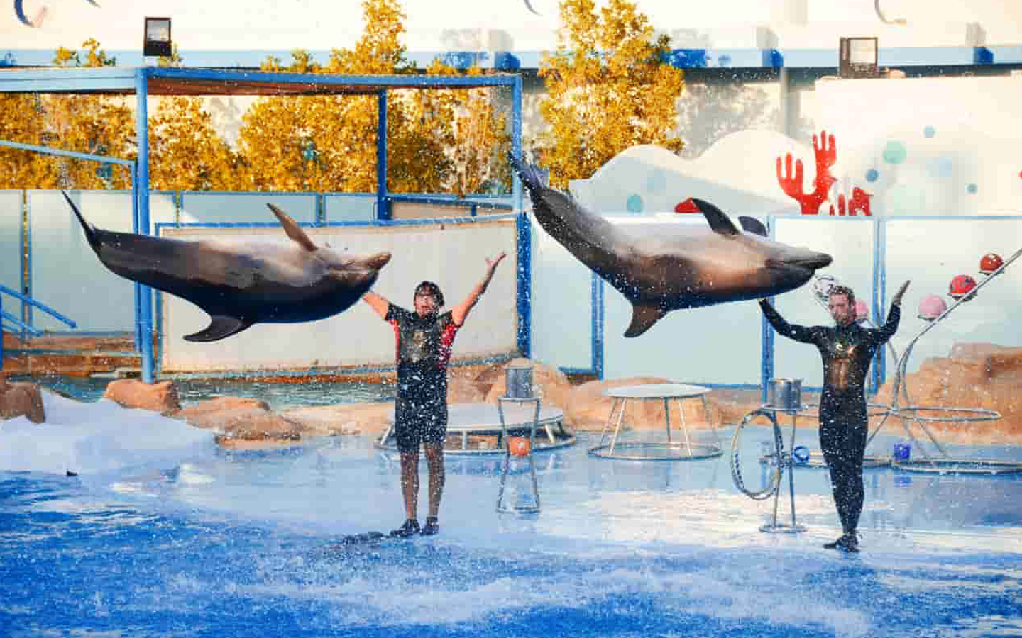The air-conditioned cars will take you from the hotel to the place designated for the dolphin show, which lasts for a full hour, from 3 to 4 in the afternoon, in a designated swimming pool, during which we enjoy the most beautiful shows and acrobatic movements presented by the dolphins, and we can also enjoy taking pictures in the place or with dolphins or even swimming with Dolphins inside the water.