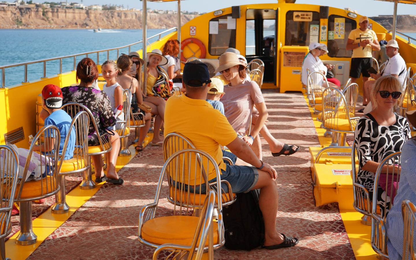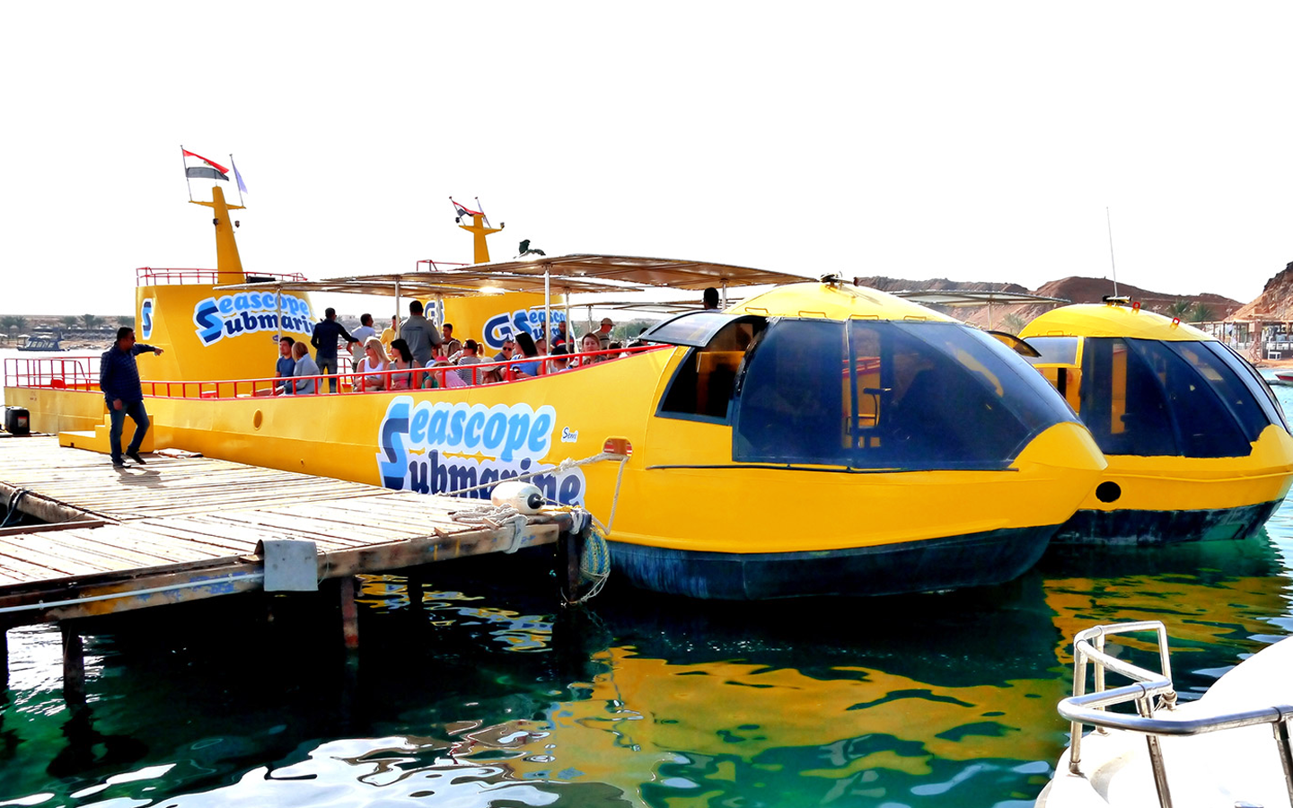 The departure time is about an hour before the tour. The air-conditioned cars will take you from your hotel to the marina, then we will board the boat for underwater diving. It is half a submarine that will take us on a tour under water at a depth of 4 meters in the coral reef area, then we will go up to the upper part. You can use tools Snorkeling To make snorkeling if desired, the tour will extend for two hours, during which we will enjoy the stunning views of the marine environment of the very distinctive waters of the Red Sea.