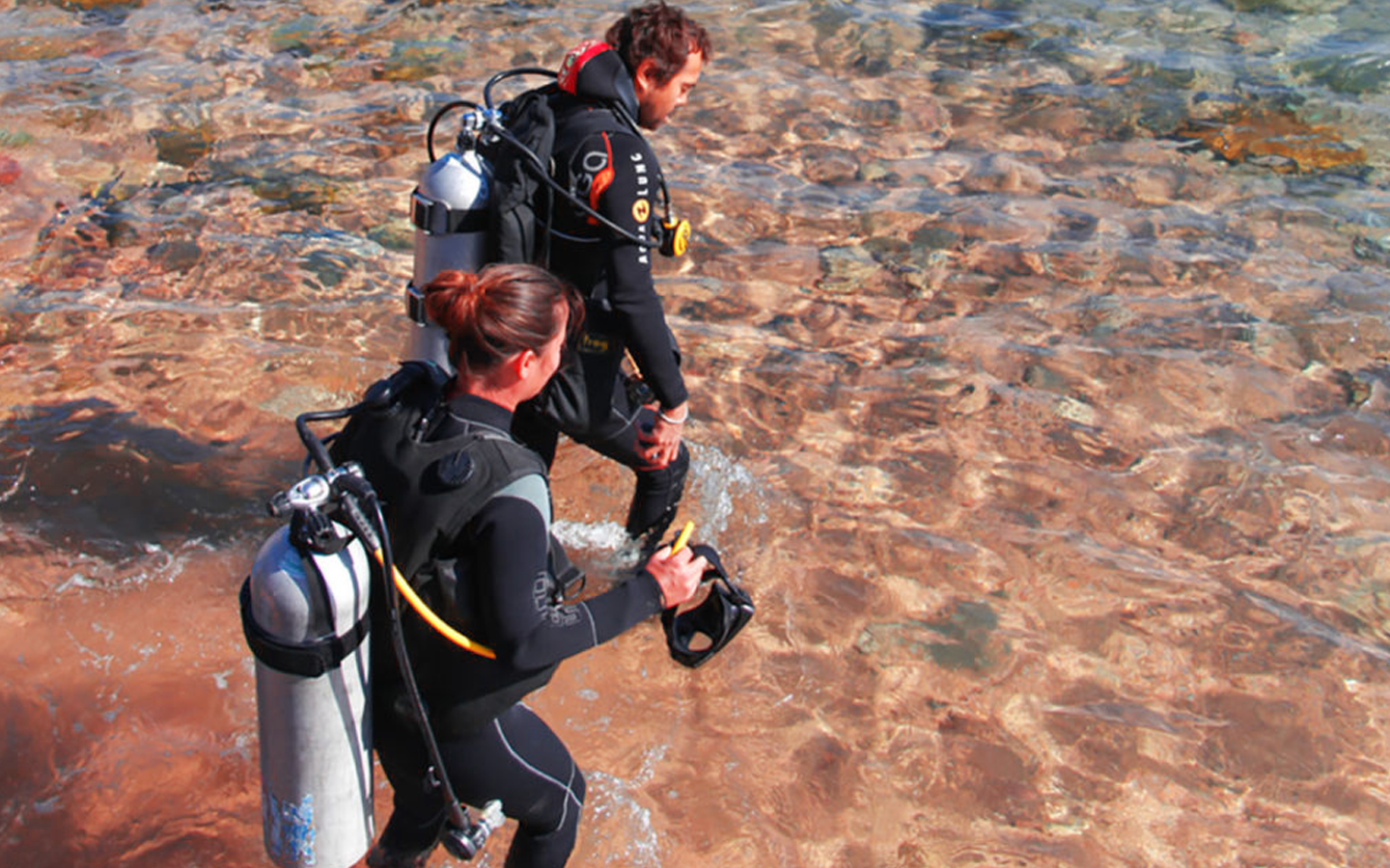 Nel centro immersioni, una persona specializzata ti farà diverse domande per assicurarti che tu sia pronto per immergerti sott'acqua, e ti chiediamo di compilare un piccolo modulo cartaceo per verificare le tue condizioni di salute, e il capitano subacqueo specializzato spiegherà tutte le istruzioni , poi sceglierai lo scafandro adatto a te in base alla taglia, quindi andremo con il capitano delle immersioni a Lui ci spiega le istruzioni in forma pratica nell'acqua sulla spiaggia prima di partire, ogni capitano con due persone al massimo, poi inizieremo la nostra avventura sott'acqua per 15 minuti in un piccolo gruppo per divertirci a incontrare i nostri amici subacquei dalle simpatiche e bellissime creature marine, conosceremo il loro modo di vivere e come sono si adattano alla vita marina in condizioni molto diverse dalla vita in superficie.