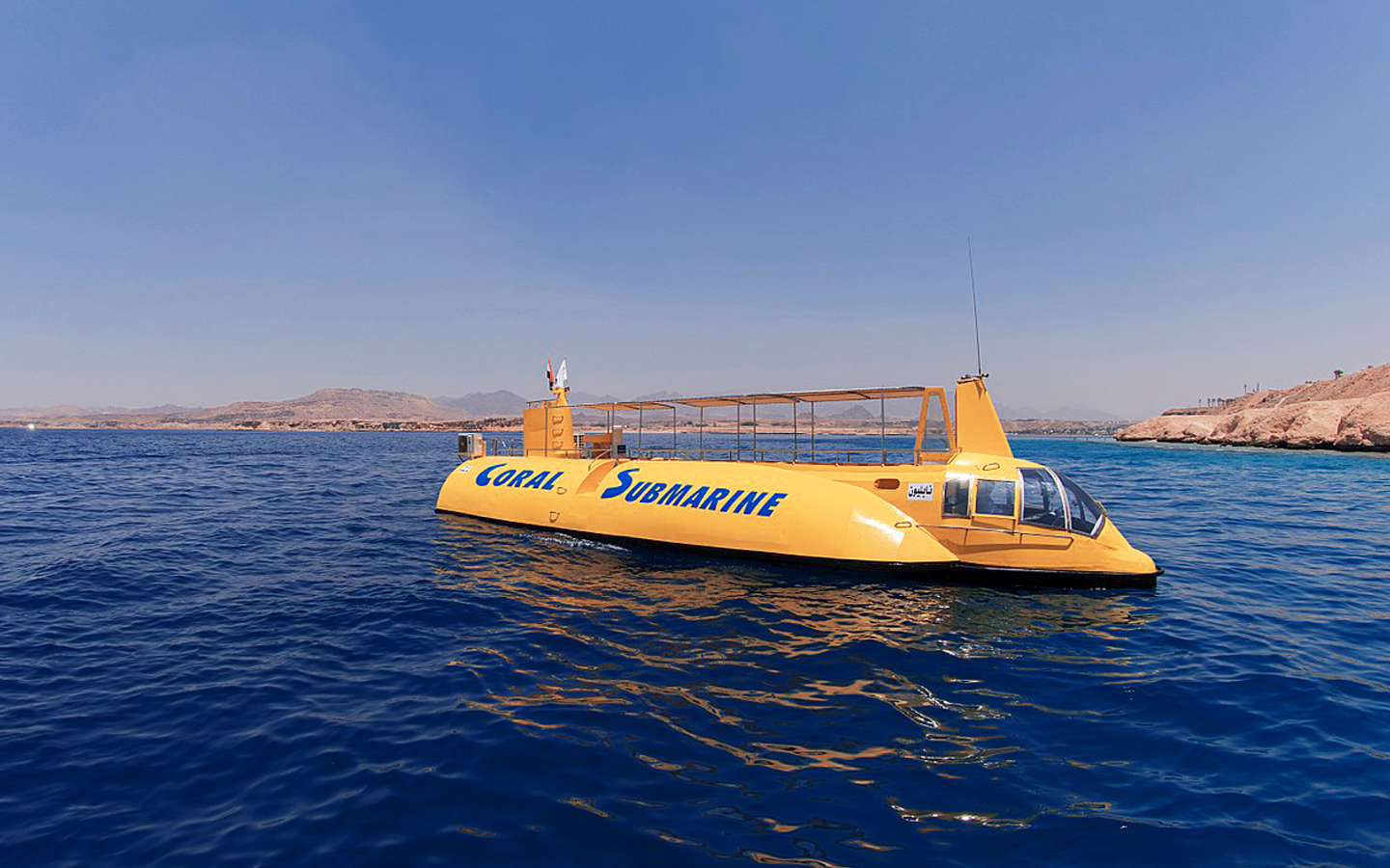 L'orario di partenza è circa un'ora prima del tour, le auto con aria condizionata ti porteranno dal tuo hotel al porto turistico, quindi saliremo a bordo della barca per le immersioni subacquee, è un sottomarino che ci porterà in un tour sott'acqua a una profondità di 4 metri nella zona della barriera corallina, il tour si estenderà per un'ora e mezza, ci divertiremo durante esso, con viste mozzafiato sull'ambiente marino delle acque del Mar Rosso molto caratteristiche.