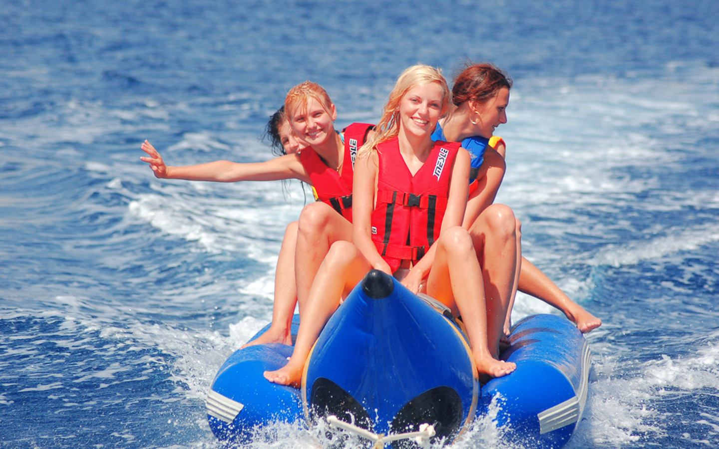 Saliremo a bordo del Banana Boat o del Tube Boat, che saranno rimorchiati dal motoscafo per alcuni minuti prima che il motoscafo effettui una virata improvvisa, causando il ribaltamento del Banana Boat o del Tube Boat e la caduta di tutti i passeggeri l'acqua. Ripeteremo questa faccenda avanti e indietro.